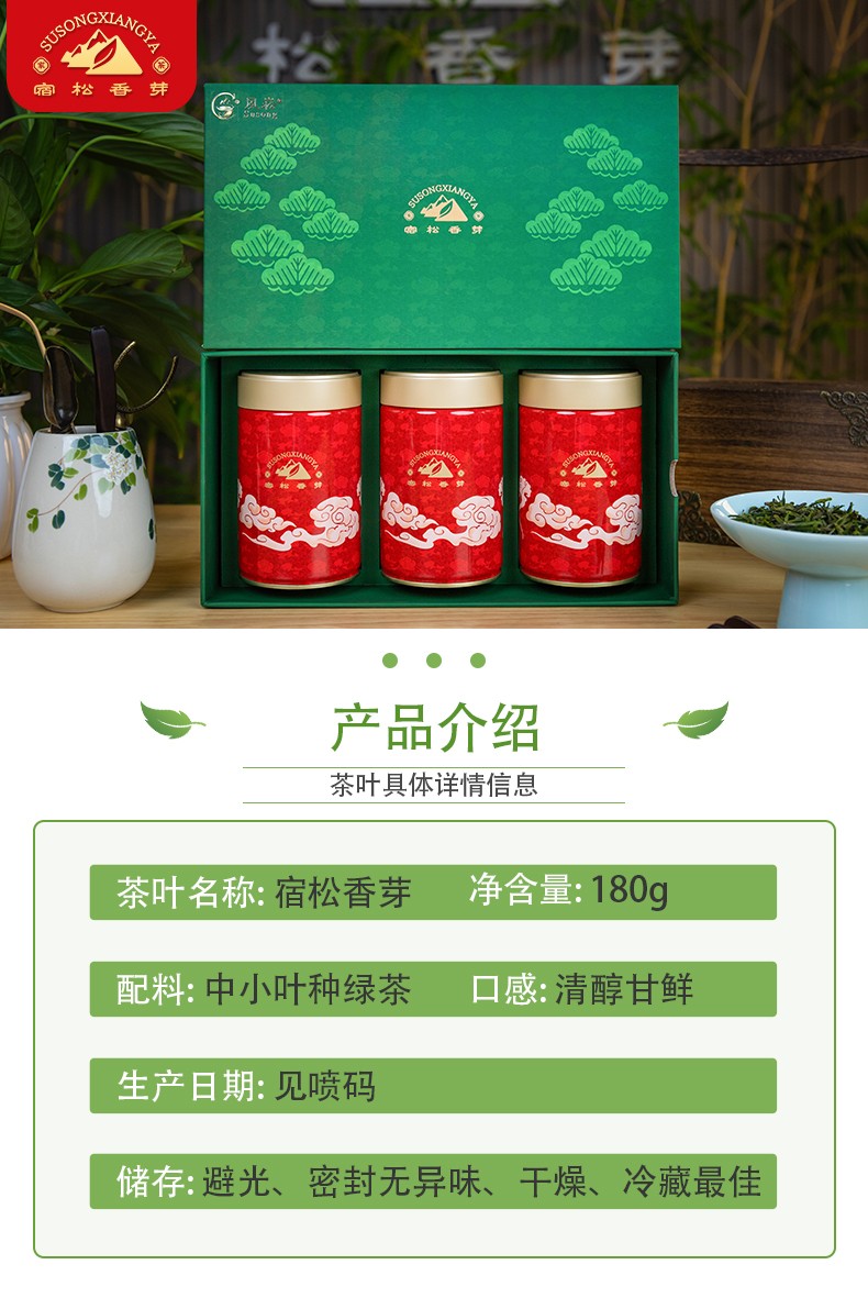 【宿松香芽】安徽大别山九井沟绿茶礼盒装180g(安吉白茶)(3罐)起附赠5g试喝茶包