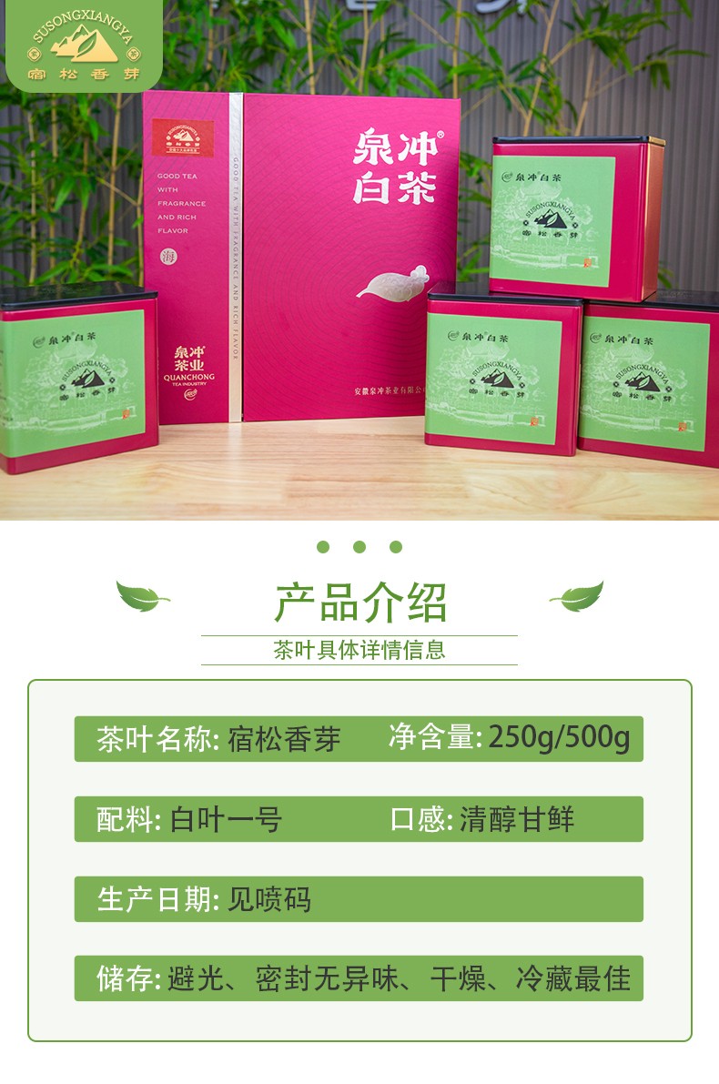 【宿松香芽】安徽大别山泉冲绿茶(安吉白茶)简装500g(1包)起附赠5g试喝茶包